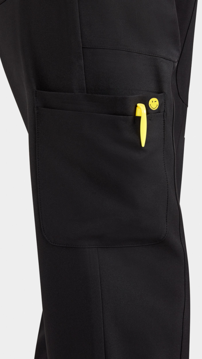 Koi Smiley Jolly jogger medicinske pantalone spajaju udobnost, funkcionalnost i razigran dizajn. Dio su posebne saradnje brenda koi i SmileyWorld, pa uz praktičnost donose i prepoznatljiv detalj koji unosi vedrinu u svaki radni dan.