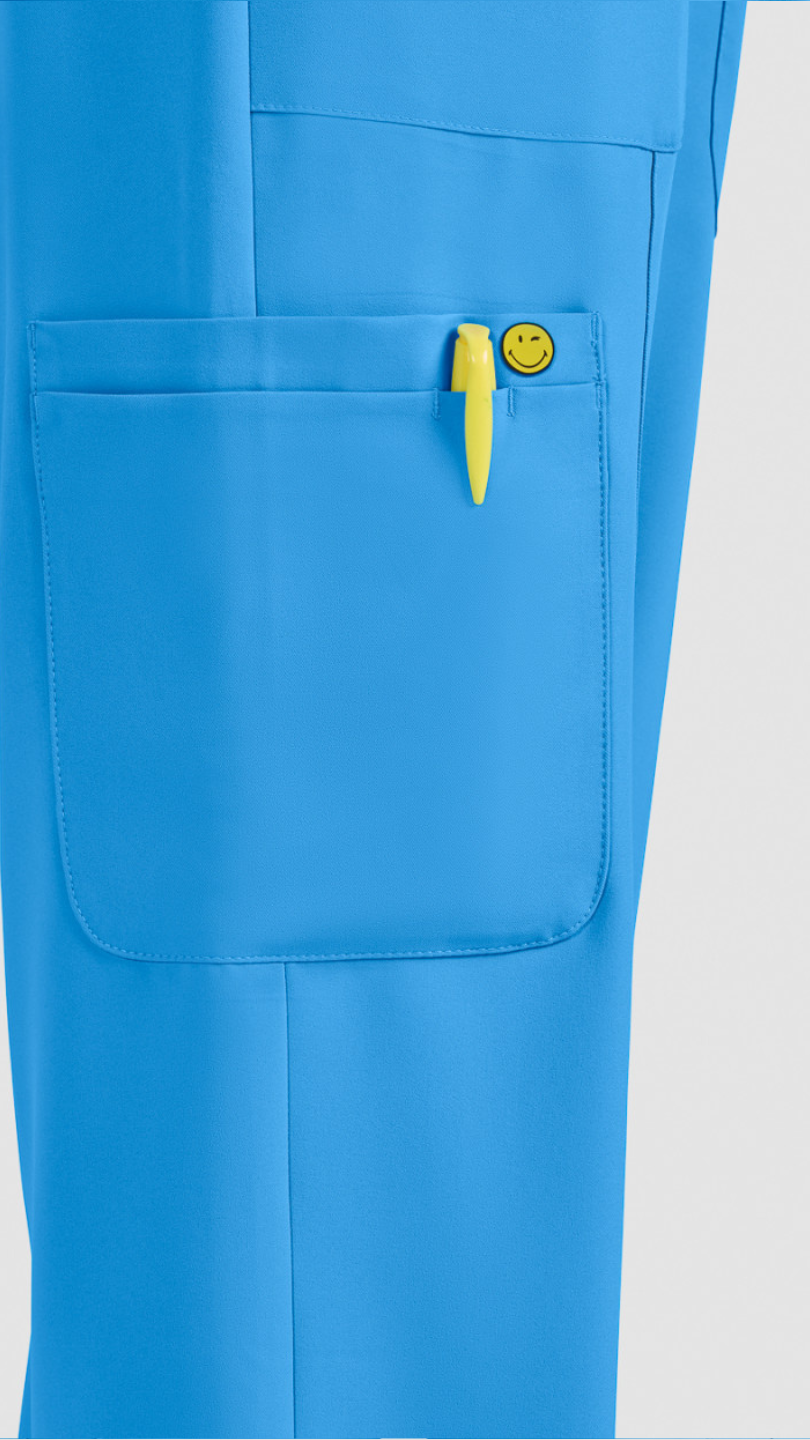 Koi Smiley Jolly jogger medicinske pantalone spajaju udobnost, funkcionalnost i razigran dizajn. Dio su posebne saradnje brenda koi i SmileyWorld, pa uz praktičnost donose i detalj koji unosi pozitivnu energiju u svaki radni dan.