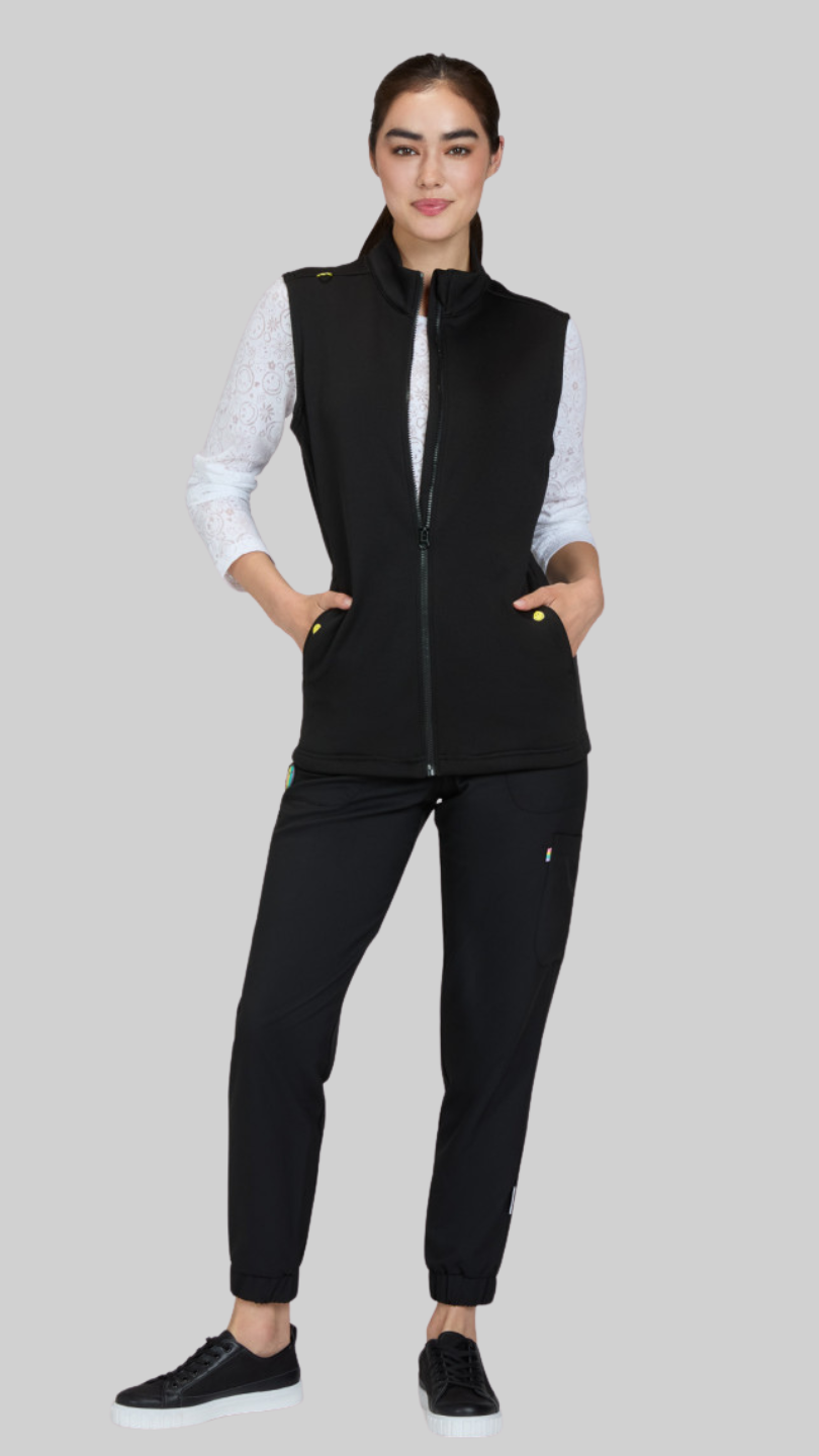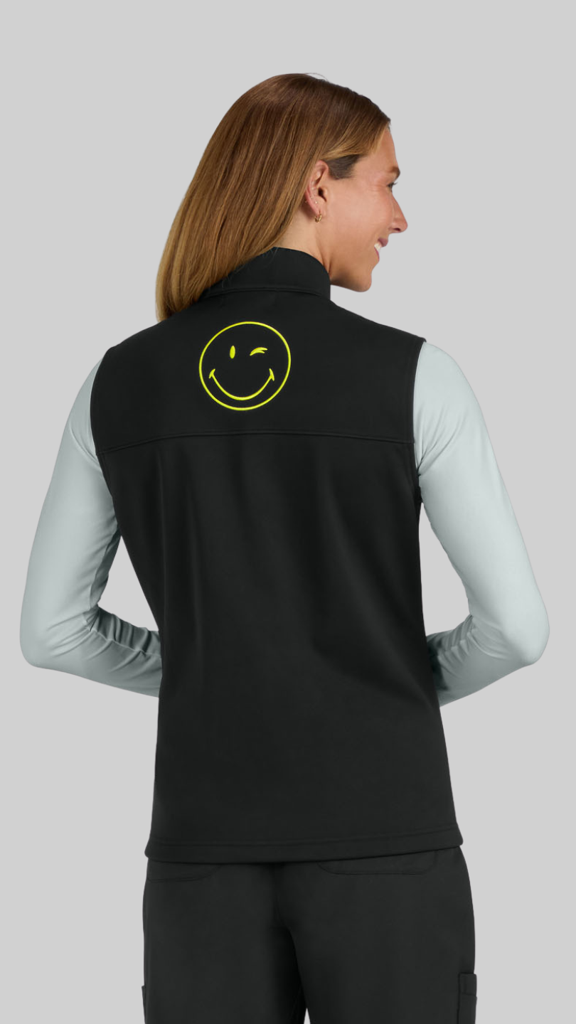 Koi Smiley prsluk je lagan i praktičan dodatak medicinskoj uniformi, savršen za slojevito oblačenje tokom dugih smjena. Moderan kroj i razigrani Smiley vez na leđima daju mu prepoznatljiv i vedar izgled.